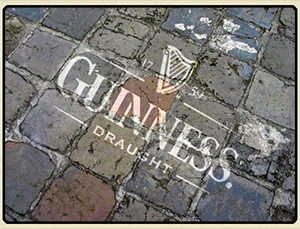 Guinness, with their iconic branding that to some reads with Dublin, used template graffiti to further tie their motif with the cobbled streets of their birthplace.